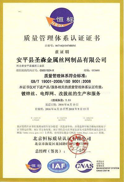 • 質量認證證書